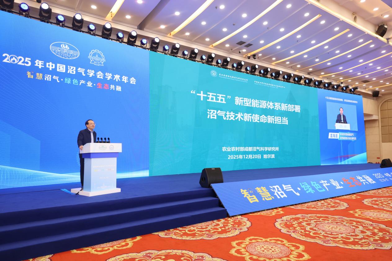 12月20日-21日,孟海波所长带队参加2025年中国沼气学会学术年会。本次年会由中国沼气学会和哈尔滨工业大学联合主办,以“智慧沼气 绿色产业 生态共融”为主题,聚焦生态化应用创新成果、废弃物协同处理、碳减排路径、应用场景创新等前沿技术与热点议题进行深度交流,有关院士专家、产业联盟代表、领军企业负责人、在读研究生等600多人参加会议。