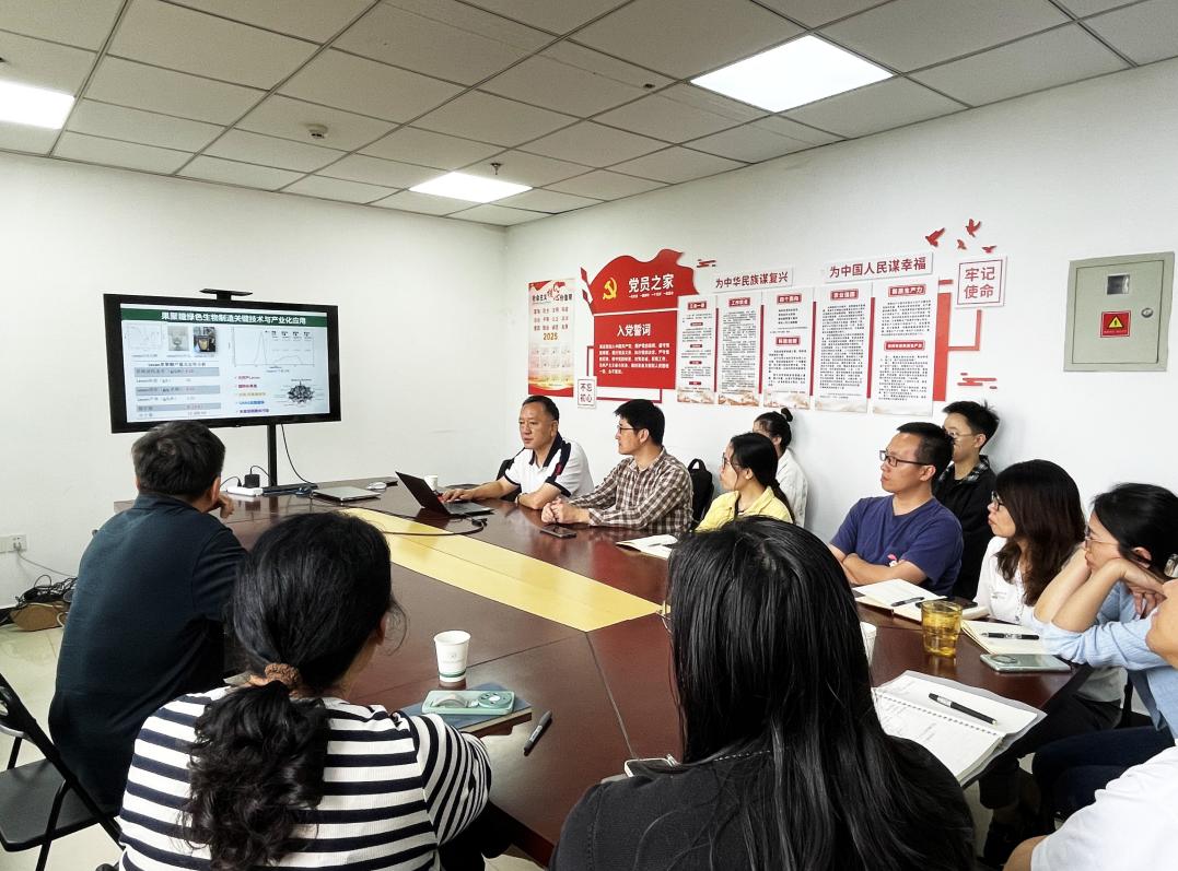 杨培龙副所长重点介绍了饲料研究所在非常规饲料资源开发、微生物单细胞蛋白细胞等方面的科研布局与代表性成果,并分享了研究所在成果开发与转化方面的经验。何明雄副所长介绍了沼科所学科布局、平台建设及代表性科研成果等情况,围绕我所在合成微生物组、细胞工厂构建及饲用油脂及蛋白产品创制等方面的科研进展进行了交流。双方就未来非粮饲用产品开发、联合申报项目及合成生物技术开发方面达成一致合作意愿。沼科所微生物合成生物学与生物转化创新团队相关科研人员及部分研究生参加了座谈会。