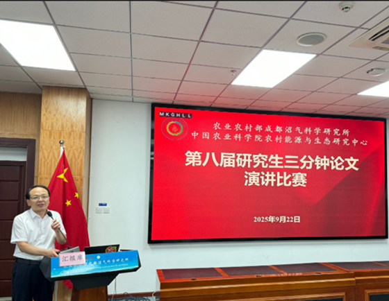 为促进学术交流,提升研究生创新能力、论文撰写能力和演讲水平等综合素质,2025年9月22日下午,沼科所第八届研究生三分钟论文演讲比赛在综合科研楼多媒体教室举行。孟海波所长出席活动并致辞,部分导师代表和科研人员参加活动并担任评委,活动由何明雄副所长主持。