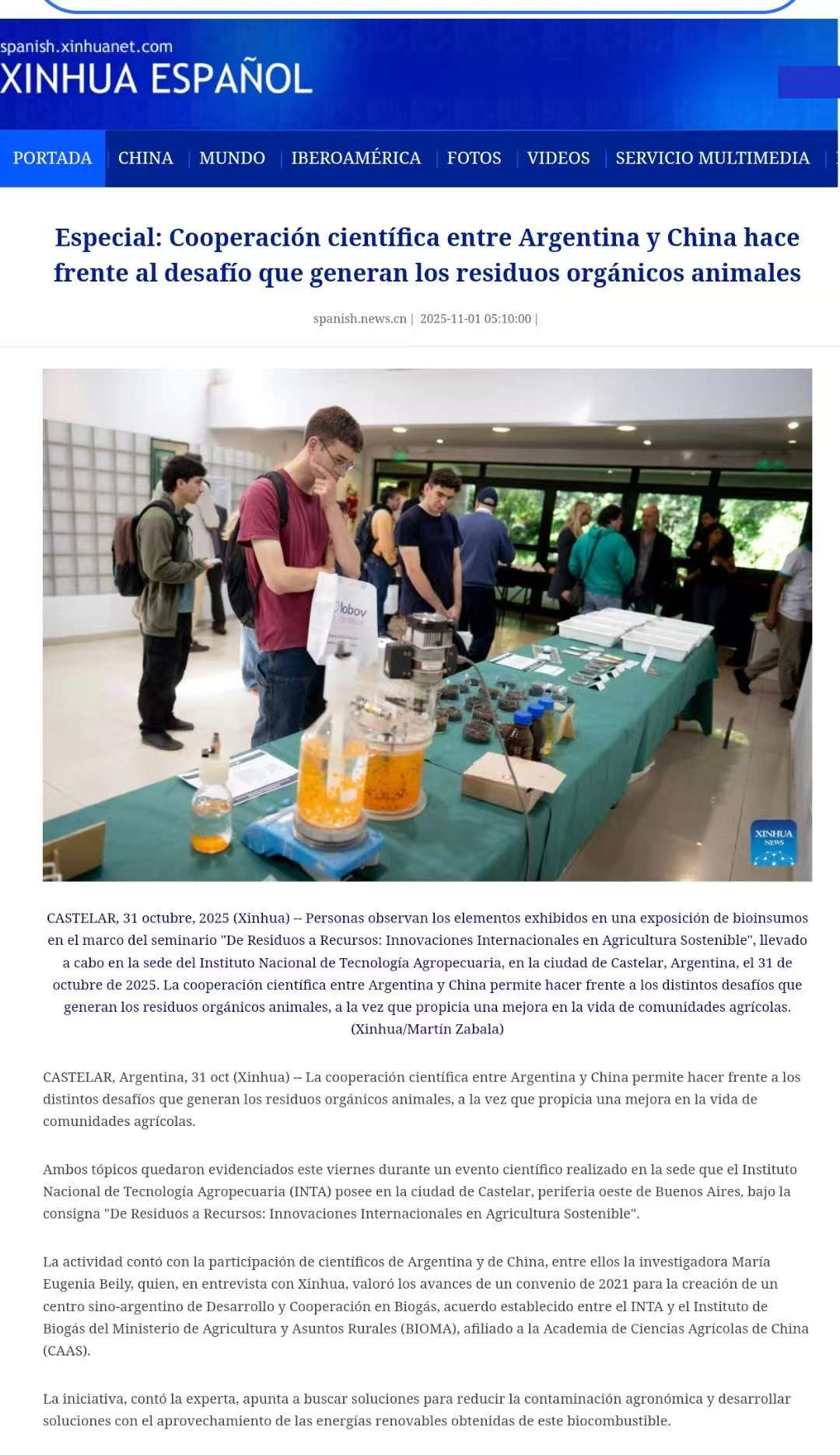 在阿根廷期间,沼科所与阿根廷国家农业技术研究院联合举办“农业及农产品加工废弃物处理技术发展国际研讨会及培训班”。聚焦农业废弃物处理技术及应用、微生物合成生物学技术等前沿议题,张鸣鸣研究员、王文国研究员、吴波副研究员分别做主旨报告,系统介绍了相关领域研究进展、中阿及中拉沼气合作现状与沼气技术应用实践,引发与会专家、企业的热烈反响,相关活动获得新华社西语频道专题报道。在中国驻阿根廷大使馆的支持下,团组与阿根廷国家农业技术研究院院长就未来深化务实合作开展了富有成效的会谈。