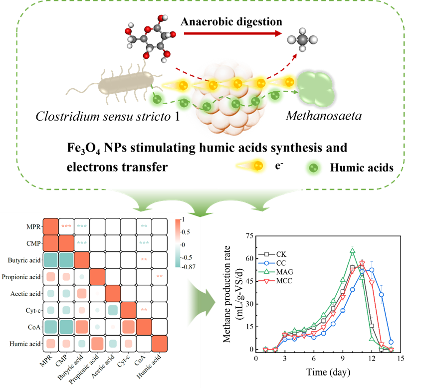 近日,沼科所乡村人居环境污染治理创新团队利用Fe3O4纳米颗粒(Fe3O4 NPs)强化高浓度合成废水的厌氧消化性能,获得了Fe3O4 NPs在厌氧消化中解抑增效的作用机制。相关成果发表于《生物质和生物能源(Biomass and Bioenergy)》。